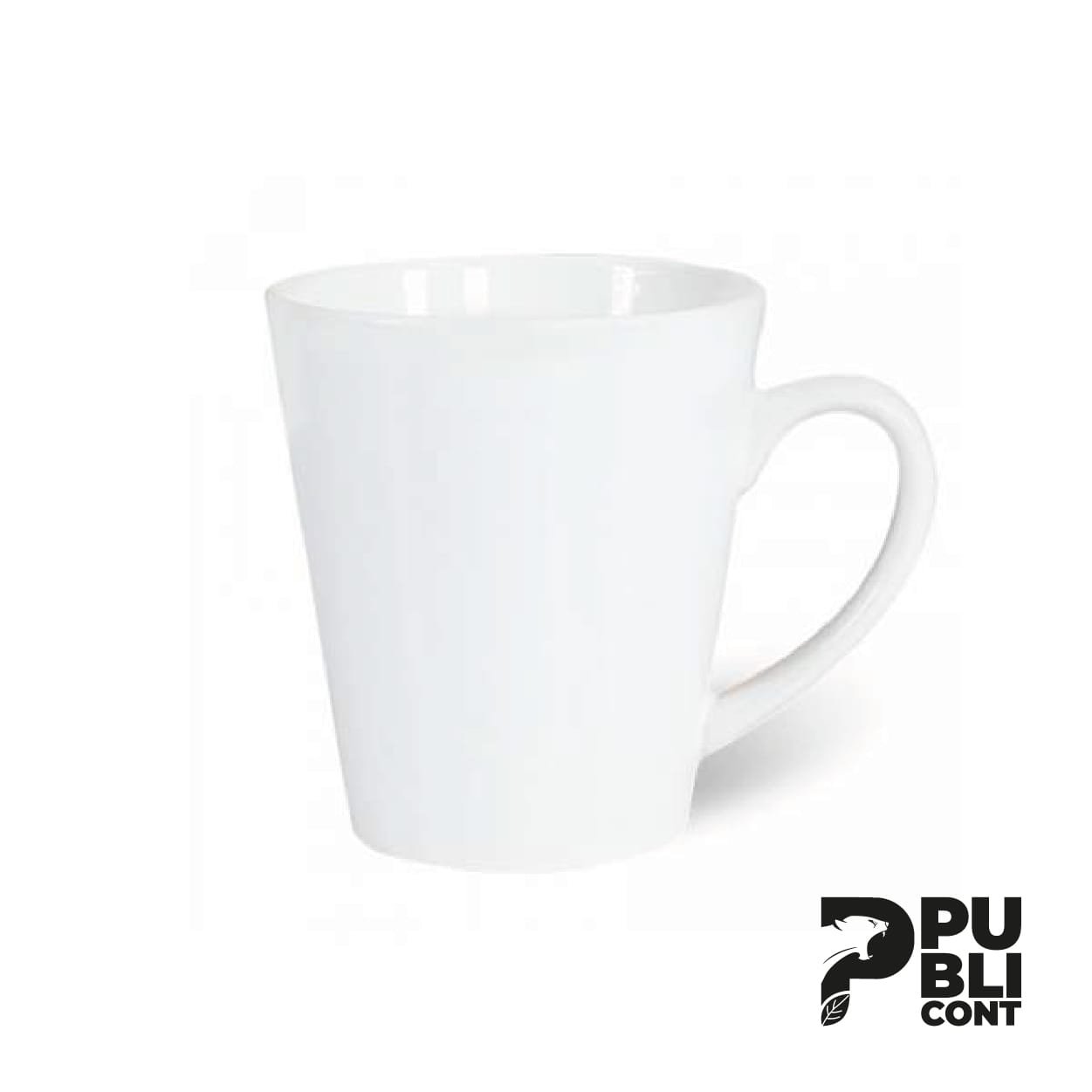 Taza cónica 12 oz de cerámica, con diseño moderno y estilizado. Ideal para bebidas calientes o frías y personalización. Resistente al calor